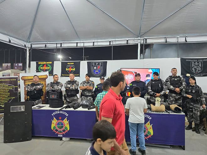 Polícia Militar também interagiu com o público através de seu estande onde foram expostos materiais utilizados no dia a dia dos militares, viaturas e panfletos com informativos de segurança e detalhes sobre o trabalho da corporação, promovendo uma maior aproximação com os cidadãos e fortalecendo a confiança da comunidade na segurança pública. A integração entre a polícia e os participantes foi bem recebida, contribuindo para um ambiente festivo e seguro.