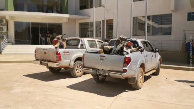 Uma das caminhonetes modelo Mitsubishi/L200, placas NAF 6201, havia sido roubada no Bairro Vila Acre há cerca de oito dias. Dois bandidos armados surpreenderam os moradores e anunciaram o assalto e a proprietária ficou surpresa com o trabalho em recuperar o seu bem num curto prazo.