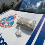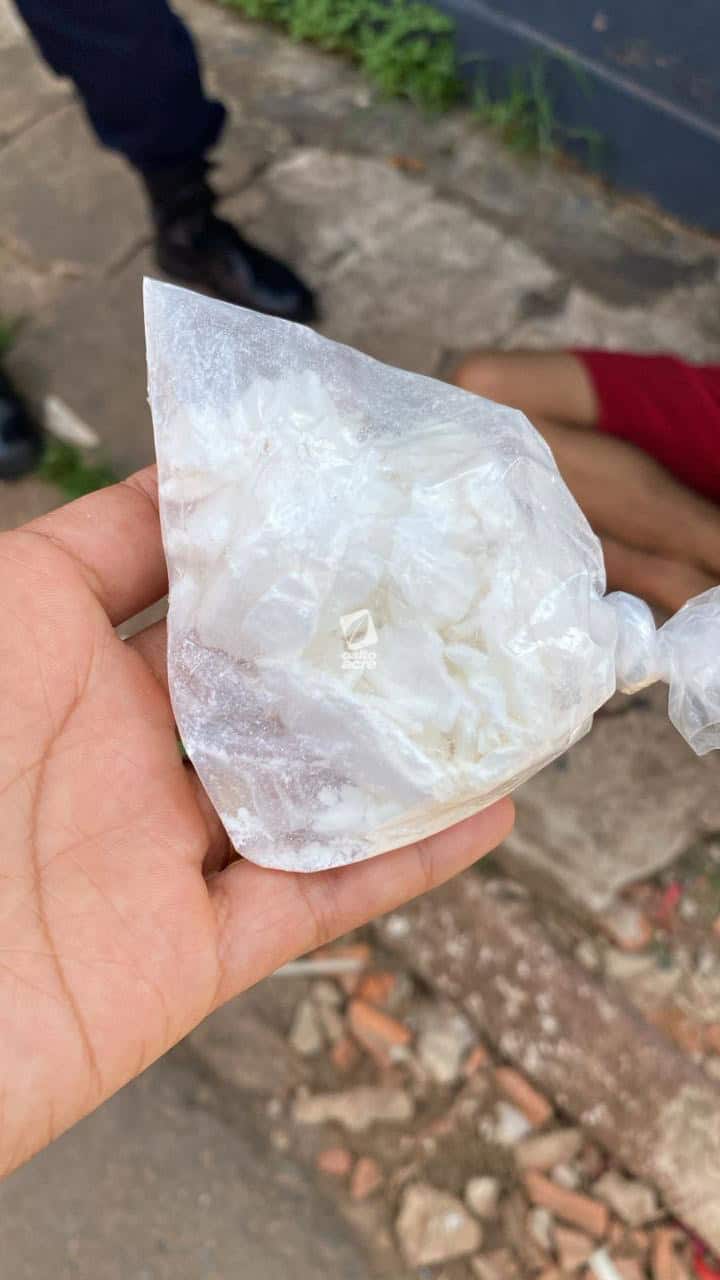 Na sacola arremessada, os policiais encontraram um tijolo de maconha pesando 1,3 kg. Com o suspeito, ainda foi apreendido um invólucro de cocaína com 50 gramas.