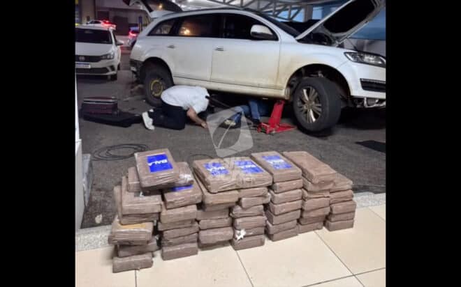 Uma fiscalização realizada na tarde desta quinta-feira (4) resultou na apreensão de aproximadamente 93 quilos de cocaína escondidos em compartimentos falsos de um veículo modelo SUV que trafegava pela BR-317, no sentido fronteira–Rio Branco.