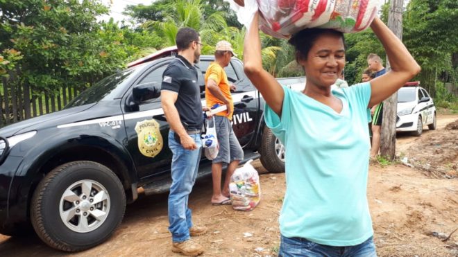 Agentes da Polícia Civil do município de Epitaciolândia, sob o comando do delegado Luís Tonini, realizaram um ação natalina nesta semana distribuindo cestas básicas para algumas famílias carentes do Bairro Favelinha.