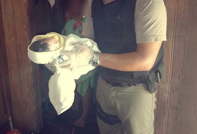 Dentro da viatura, estava um policial que é acadêmico de medicina e se dispôs a ajudar enquanto uma ambulância com socorristas chegava no local. Ao chegarem na casa, a mulher acabara de dar a luz no chão da casa e o bebê ainda estava ligada pelo cordão umbilical.