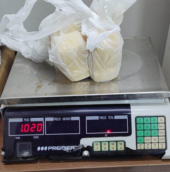 Os militares pegaram o objeto e constataram ser entorpecente, aparentemente pasta a base de cocaína, um quilo da substância.
