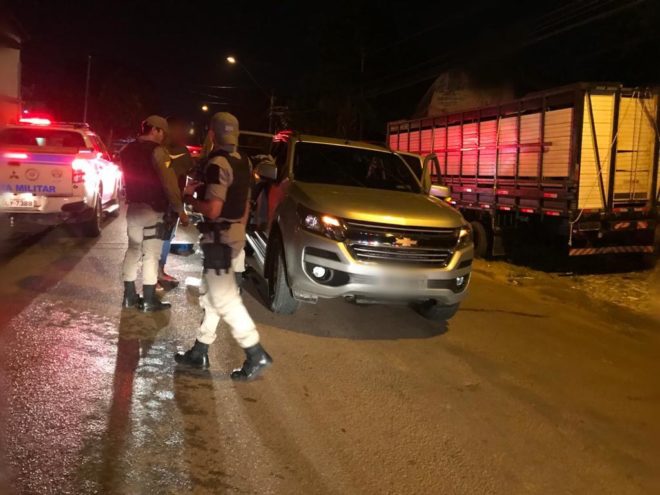 Próximo a um supermercado, no bairro 6 de Agosto, um popular percebeu a situação e ligou para o 190. Com as informações repassadas pelo Ciosp, as guarnições do 2° Batalhão conseguiram avistar a caminhonete, onde se iniciou um acompanhamento na tentativa de parar os autores.