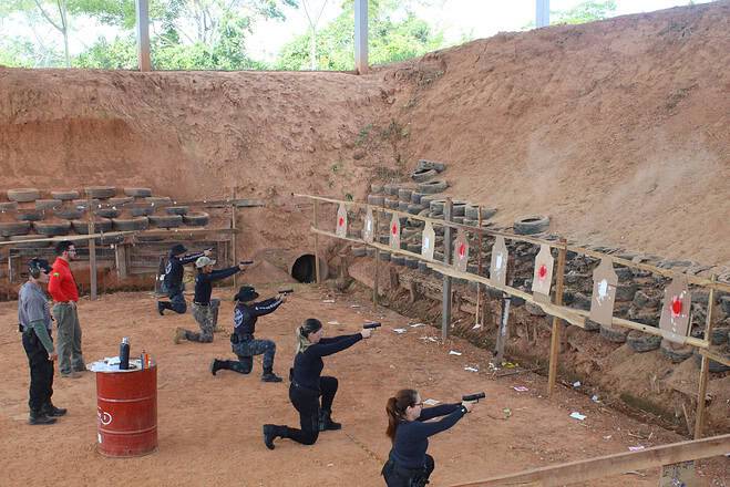 Policiais penais fazem treinamento de tiro durante primeiro COI feminino. Foto: Zayra Amorim/Iapen.