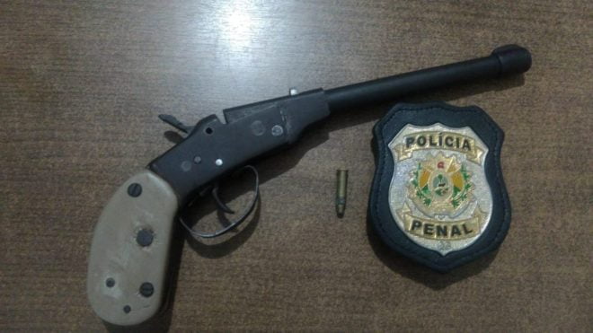 Policiais penais da Unidade Penitenciária do Quinari, localizada no município de Senador Guiomard, prenderam na noite deste sábado, 26, um homem que transitava no km 6 da BR 317 com um revólver calibre 22. Ele não possuía documento de porte ou de posse da arma e foi encaminhado à Delegacia do município.