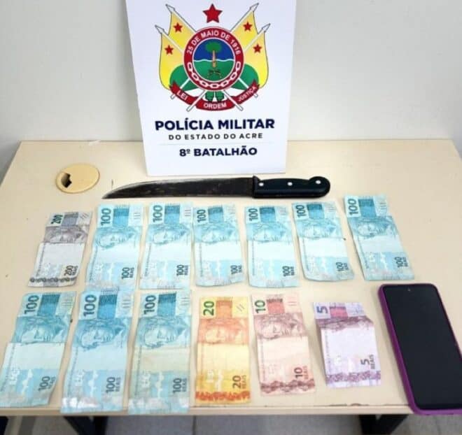 Na madrugada deste sábado (27), um homem foi preso pelo 8º Batalhão da PM após cometer um roubo à mão armada na Praça 25 de Setembro, no centro de Sena Madureira (AC). Segundo a Polícia Militar, o criminoso ameaçou a vítima com uma faca e levou um celular e R$ 1.130 em dinheiro.
