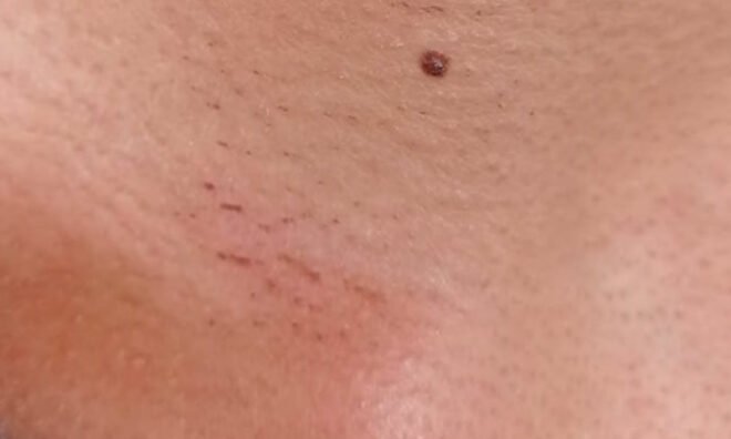 O jovem também fez um exame de corpo delito onde apresentou “lesão eritematosa em região cervical anterior à direita, cerca de 4 centímetros”.