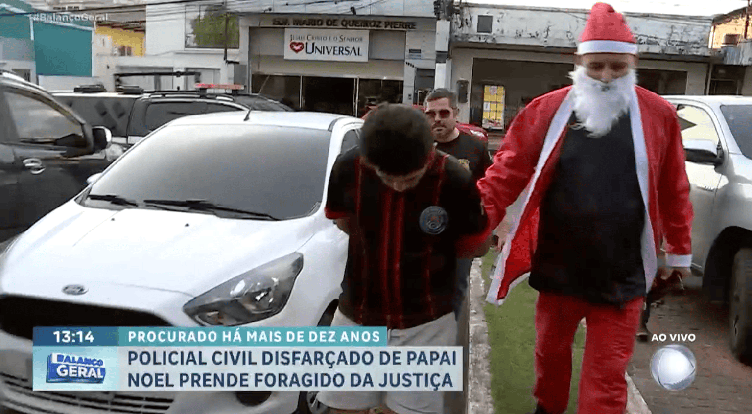 Um policial se disfarçou de papai Noel para prender Raimundo Santos, 40 anos, em Manaus (AM). Ele estava foragido do sistema prisional do Amapá há mais de 10 anos e usava o nome falso de Pablo Gustavo.