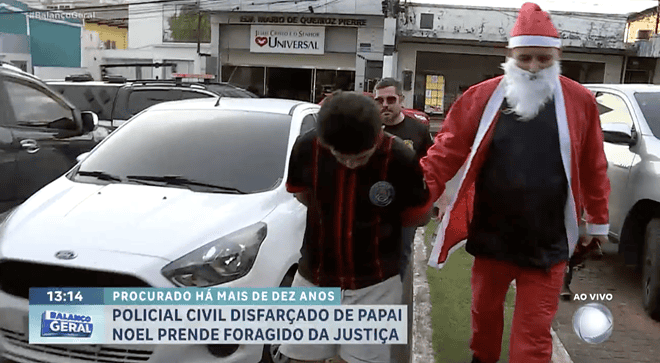 Um policial se disfarçou de papai Noel para prender Raimundo Santos, 40 anos, em Manaus (AM). Ele estava foragido do sistema prisional do Amapá há mais de 10 anos e usava o nome falso de Pablo Gustavo.