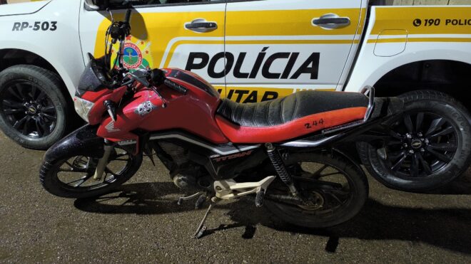 Durante a fiscalização, foi constatado que o condutor da moto não possuía Carteira Nacional de Habilitação (CNH). Além disso, a motocicleta estava sem placa, sem retrovisores e com escapamento irregular, caracterizado como descarga livre. Uma verificação mais detalhada, realizada através do número do chassi, revelou que o veículo possui restrição por roubo/furto, registrada no dia 20 de novembro de 2021, no município de Ouro Preto do Oeste, em Rondônia.