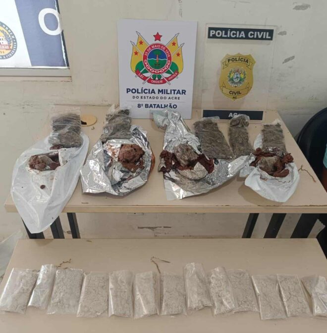 Por meio de uma abordagem precisa, os agentes policiais encontraram 13 pacotes de cocaína, totalizando 182 gramas, além de nove tabletes grandes de maconha, que somavam 682 gramas. Diante do flagrante, a suspeita foi conduzida à Unidade de Segurança Pública de Sena Madureira para os procedimentos legais pertinentes.