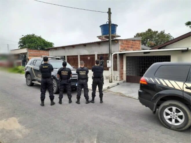 Mais de 30 policiais federais, civis e militares participaram do cumprimento dos mandados.