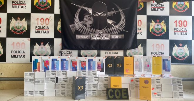 Uma equipe da Companhia de Operações Especiais (Coe), da Polícia Militar, apreedeu 85 aparelhos celulares na tarde de quarta-feira, 1°, em ação realizada na BR 317, entre os municípios de Senador Guiomard e Capixaba.