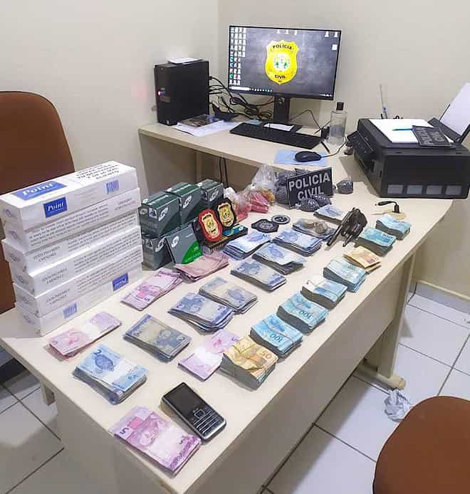 Uma arma, cigarros contrabandeados e pouco mais de R$ 76 mil reais foram encontrados pelos policiais.