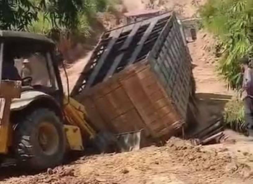 Um caminhão boiadeiro ficou totalmente destruído após a queda em uma ponte de madeira que cedeu sobre o Igarapé Suricaba na quinta-feira (14). O acidente ocorreu no Ramal da Comunidade do Cuidado, região rural próxima ao Rio Caeté, deixando o veículo soterrado sob os escombros da estrutura.