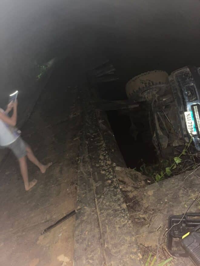 Um acidente foi registrado na ponte do Ramal do 25, em Sena Madureira, quando uma camionete caiu da estrutura nesta terça-feira (28). Este é o segundo acidente ocorrido no mesmo local em pouco tempo, aumentando a revolta e o medo entre os moradores da região, que já alertavam sobre os riscos da estrutura.