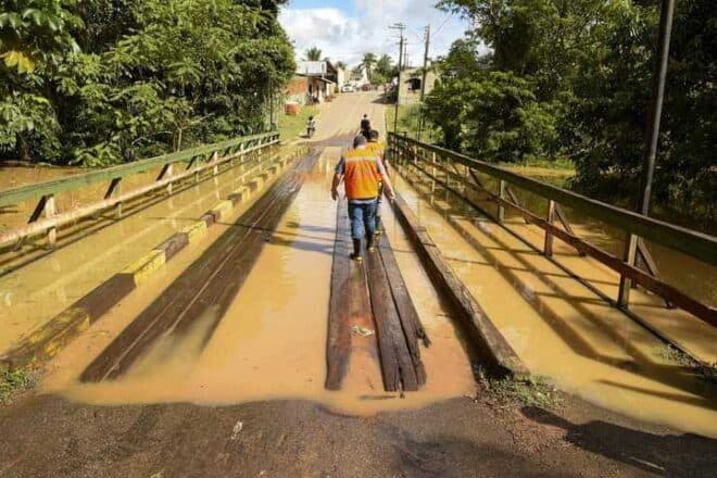 A prefeitura de Epitaciolândia precisou interditar na noite desta segunda-feira, 27, a ponte que liga o Bairro José Hassem à Avenida Internacional devido às águas do Igarapé Bahia cobrir sua estrutura e oferecer risco aos condutores de veículos e pedestres.
