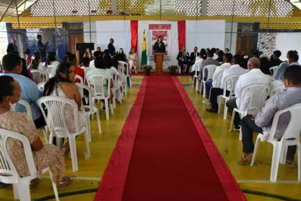 O Casamento foi celebrado pela juíza de Direito Rosilene Santana, titular da Vara Cível da Comarca de Tarauacá e com competência para o Jordão. A magistrada convocou os casais a buscarem na cooperação o caminho para manterem-se unidos. “Tenham compromisso, parceria, amizade, porque o amor é construção. Não é suficiente dizer eu te amo, você precisa mostrar o amor com atitudes, um ajudando o outro no serviço de casa, dividindo a responsabilidade com os filhos. Não é só a mãe, é o pai também. E vocês precisam estar juntos para viverem todos os momentos”.