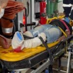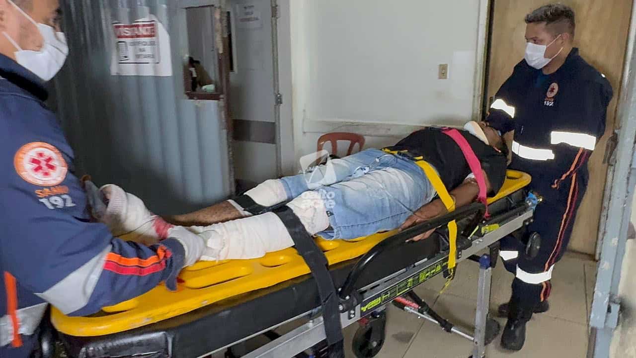 Com o impacto, o jovem foi arremessado ao solo e sofreu fratura no pé esquerdo, além de uma laceração grave com exposição de tendões e ligamentos.