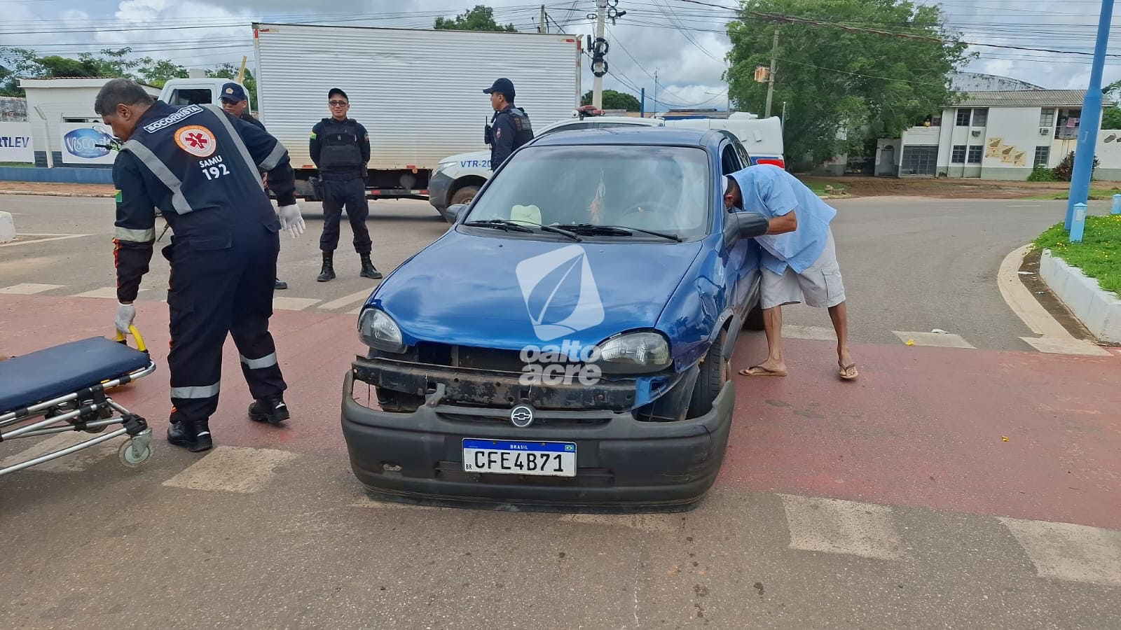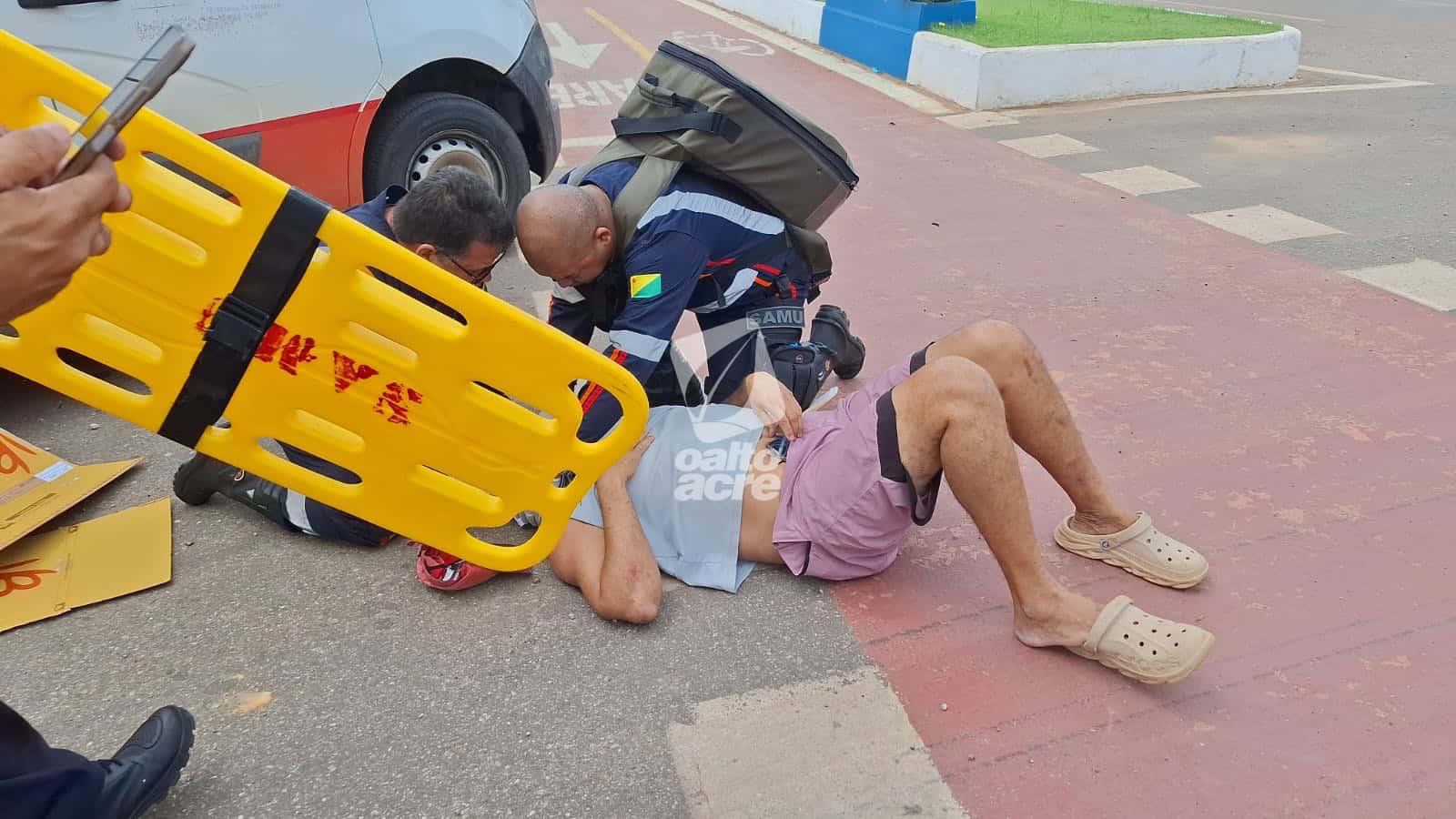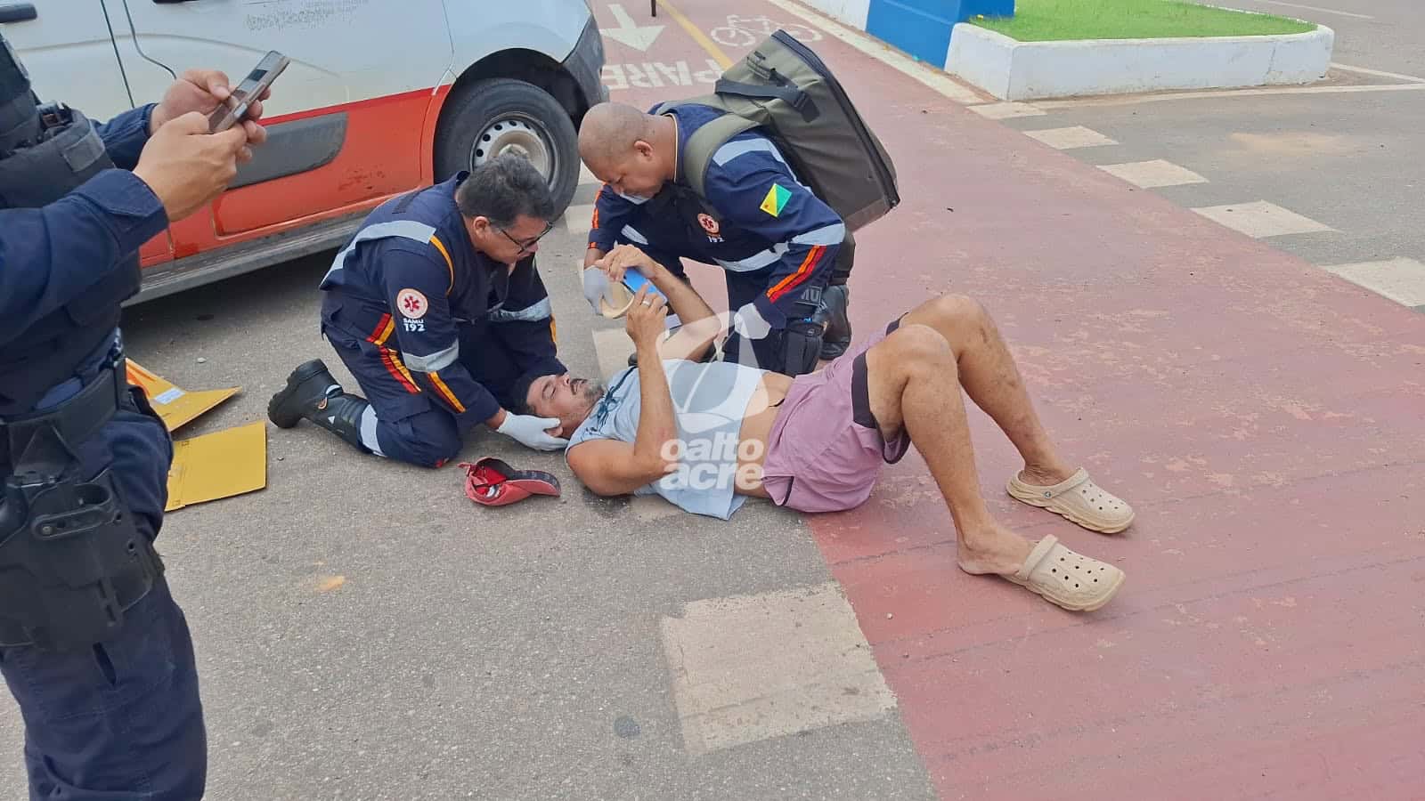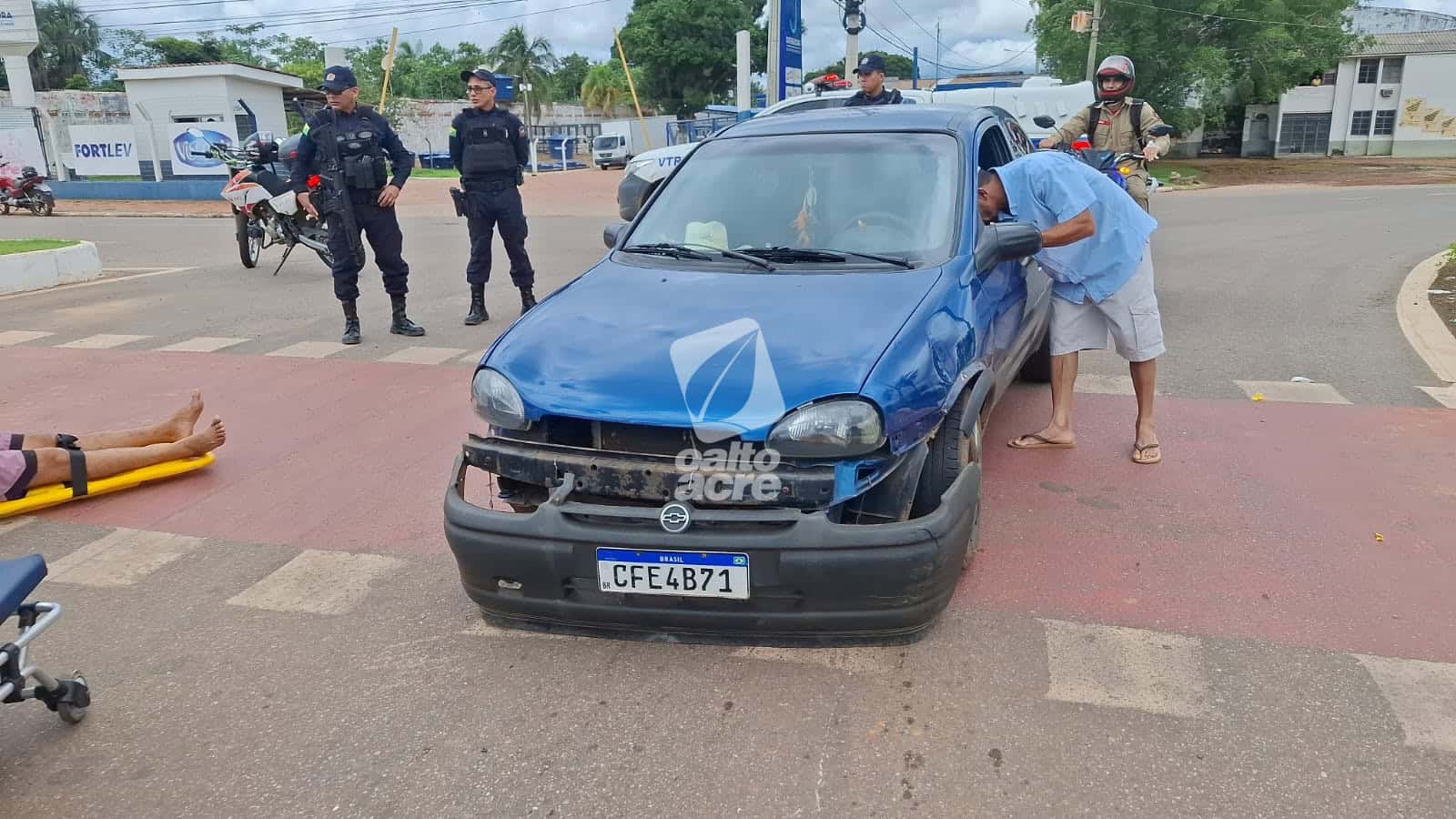 Ciclista motorizado fica ferido após invadir via preferencial e ser atingido por carro em Rio Branco