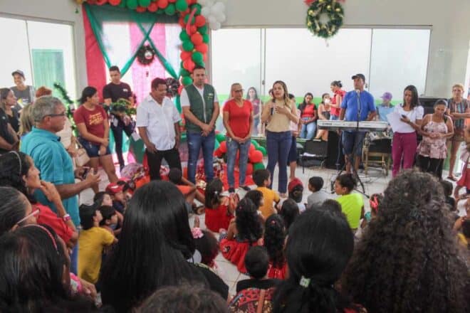 Na manhã desta quinta-feira, 22, a prefeita Fernanda Hassem participou da atividade de natal, que contou com a entrega de presentes para as crianças e encerramento dos trabalhos do Centro do Idoso na agrovila do km 26.