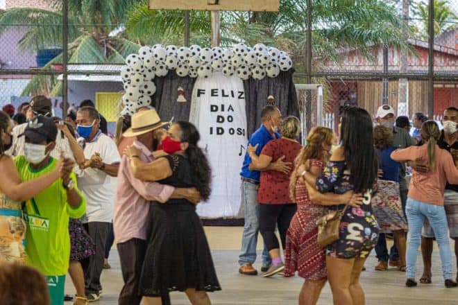 A programação aconteceu na quadra do bairro Ferreira Silva e reuniu dezenas de idosos de Brasiléia.