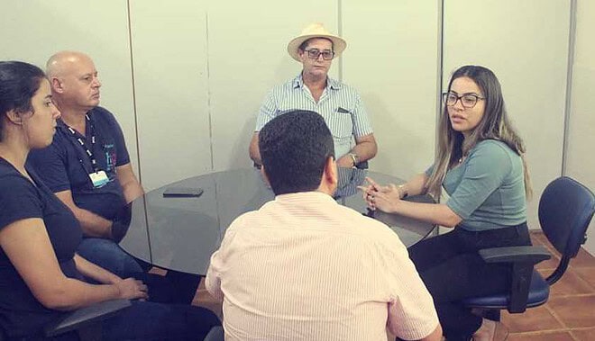 A Prefeita Fernanda Hassem recebeu nesta quarta-feira, 21, a coordenação do Hospital de Amor (De Barretos) em Brasiléia, Luiz Lucena, Vailson Pessoa, Flávio Artemio e Jaqueline Andrade enfermeira voluntária.