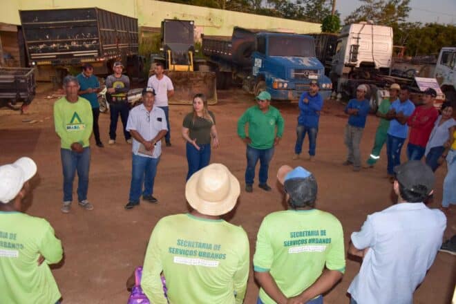 A Prefeita Fernanda Hassem acompanhada do Vice-prefeito Carlinhos do Pelado, esteve reunida com a equipe de servidores da secretaria de obras, no finalzinho desta terça-feira, 18.