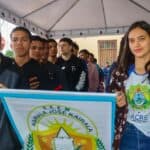 Quando eu era estudante sonhava com futuro melhor e ficava no lugar dessas crianças que hoje estão aqui cantando lindamente o hino da nossa querida cidade. É emocionante estar aqui hoje. Lembro da época em que eu participava desses momentos cívicos com alegria e entusiasmo. Estar agora do outro lado, como prefeito, é uma honra e aumenta ainda mais o meu compromisso com a educação e com esse povo tão resiliente que é o de Brasileia,” afirmou Carlinhos do Pelado, emocionado.
