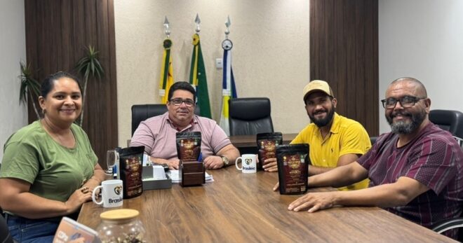 Na última sexta-feira 31 de janeiro, o prefeito Carlinhos do Pelado, acompanhado do secretário de Agricultura Mário Jorge, recebeu em seu gabinete os produtores de café Keyti Souza e Jorge Souza, da Resex Chico Mendes, ramal Santa Luzia km 84. Os produtores se destacam com a qualidade do café produzido na região do Alto Acre, o Café Raízes da Floresta, elevando o nome do estado até outros grandes centros de produção cafeeira como é o caso de Minas Gerais.