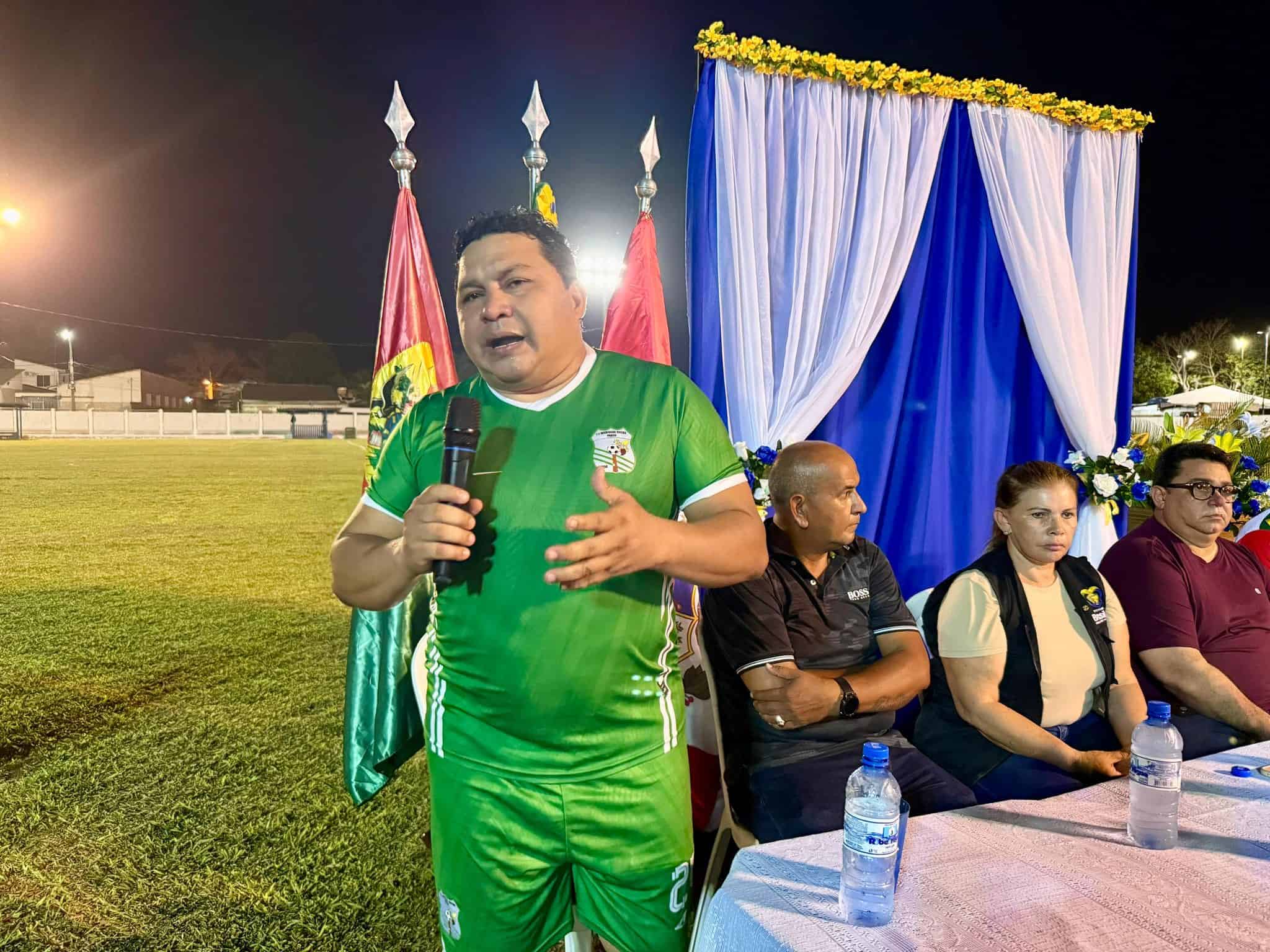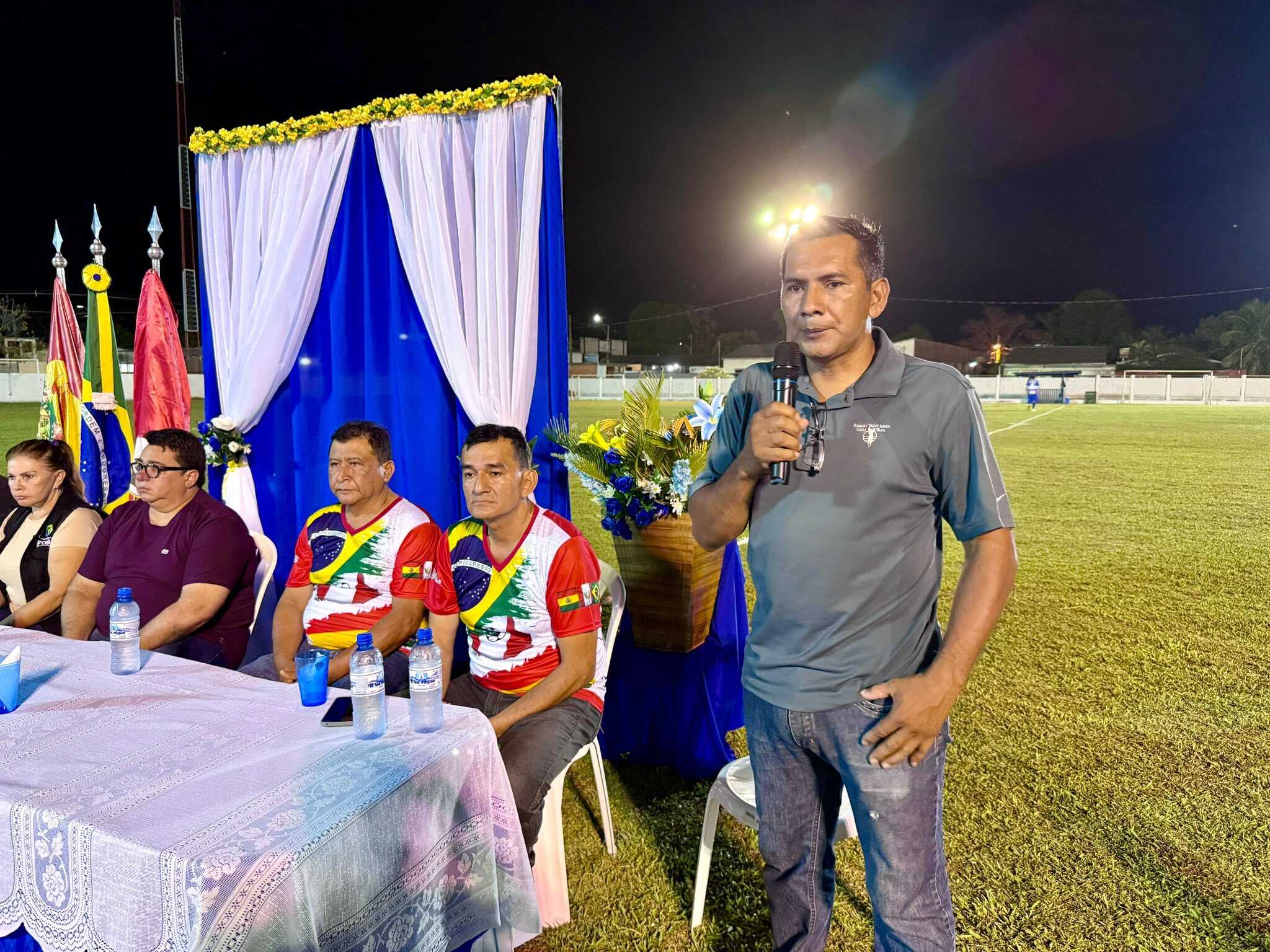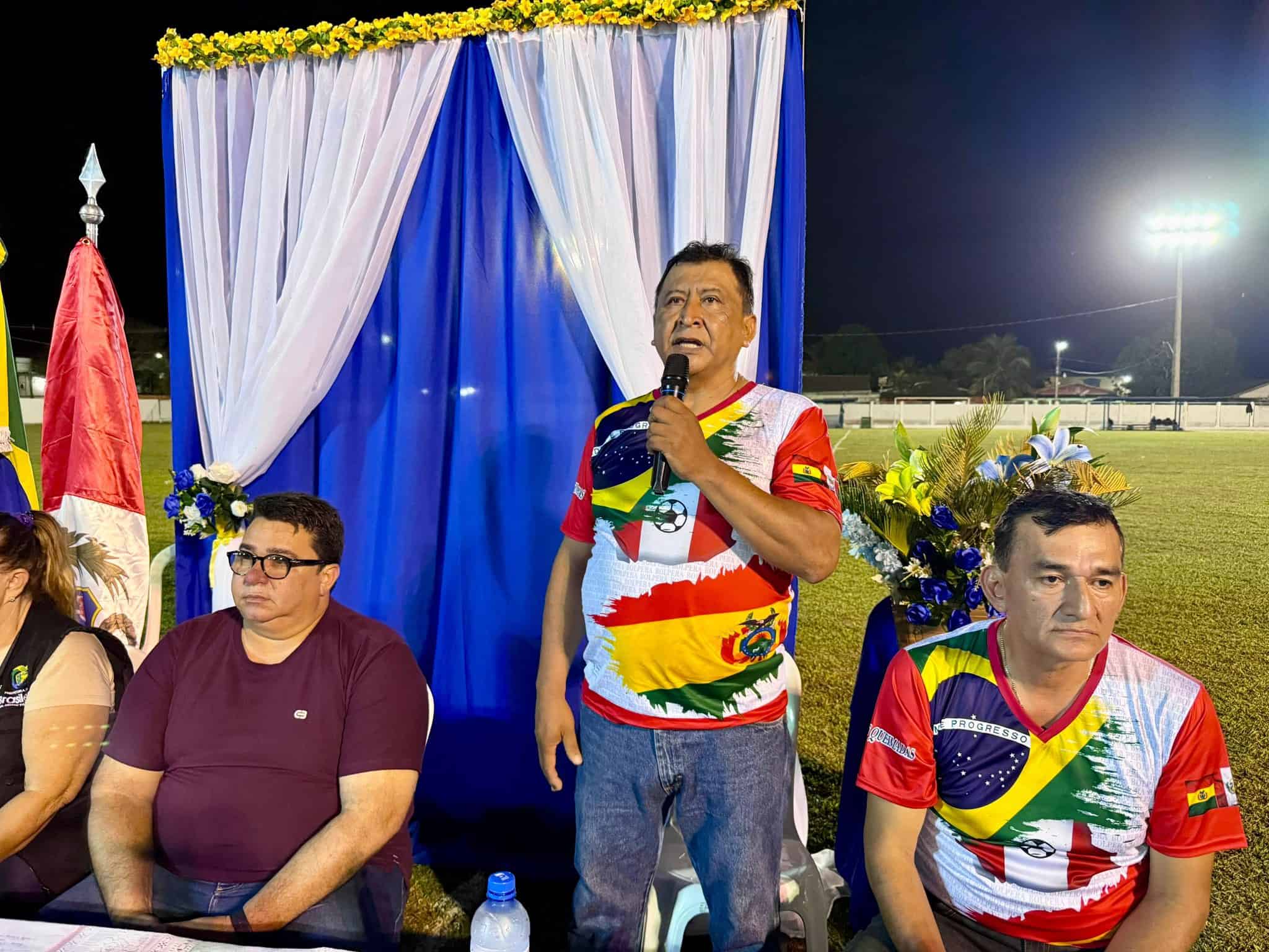 Prefeito de Brasileia abre fase final da ‘Copa Bolpebra Master 2025’ em noite de integração internacional