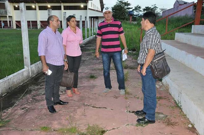 Acompanhado do gerente de esportes, Aparecido Carlos e dos representantes da empresa responsável pelos serviços, o prefeito Everaldo visitou o estádio para verificar com os engenheiros os primeiros trabalhos que serão realizados.