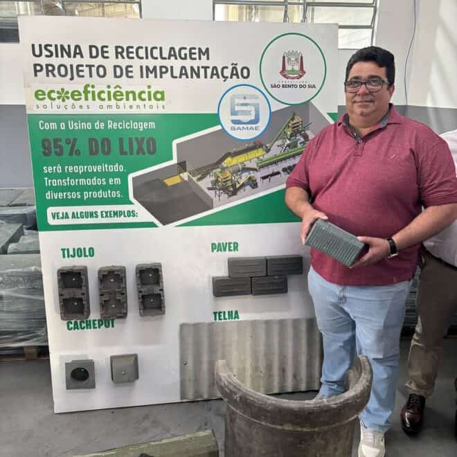 O prefeito de Brasiléia, Carlinho do Pelado, está em Santa Catarina realizando uma visita técnica à unidade de tratamento de resíduos sólidos do município de São Bento do Sul. Acompanhado do engenheiro Alselmo Oliveira e de outros prefeitos do Acre, o objetivo da viagem é conhecer de perto os processos de tratamento de resíduos e avaliar possibilidades de reutilização desses materiais, como a transformação em peças de construção, incluindo meio-fio, tijolos e outros produtos.