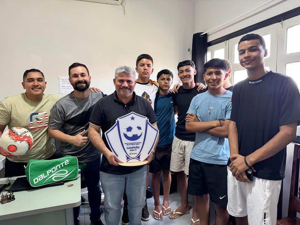 O prefeito Sérgio Lopes recebeu em seu gabinete nesta quarta-feira (3) o elenco sub-17 do São Cristóvão, campeão da Copa Cidade de Brasiléia 2025. A equipe venceu a final por 3 a 1 contra o time Aquarela no último sábado (30), em competição organizada pela gerência de esportes do município vizinho.