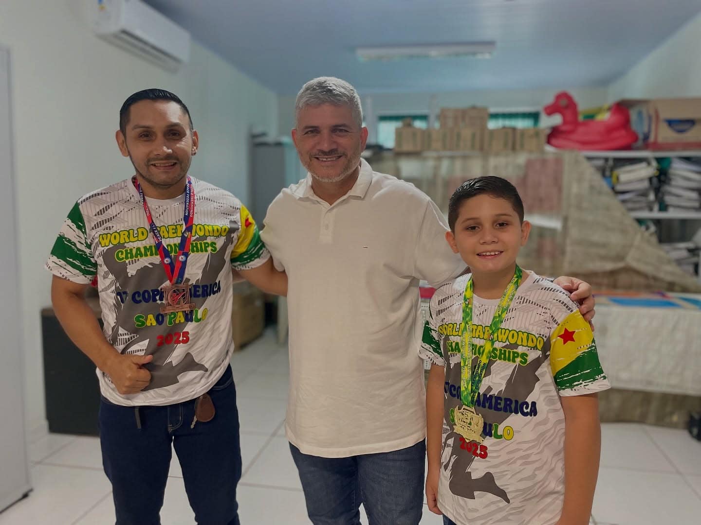 O prefeito de Epitaciolândia, Sérgio Lopes, recebeu nesta segunda-feira, 20, o jovem atleta Fabiano Rojas, de apenas 9 anos, que conquistou a medalha de ouro na Copa América de Taekwondo, representando o município e o Acre com talento e determinação.