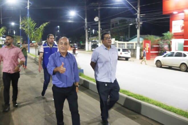 O prefeito de Rio Branco Tião Bocalom visitou, na noite dessa quinta-feira (27), a obra de revitalização e modernização do canteiro central da Via Chico Mendes.