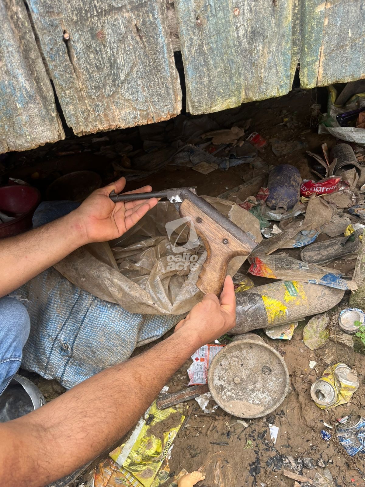 Na sequência, os agentes identificaram e prenderam um terceiro envolvido, Caico da Silva Melendre Jaminawa, encontrado com a arma utilizada no crime — uma arma de pressão adaptada para calibre .22 — além de munições e aparelhos celulares que serão periciados.