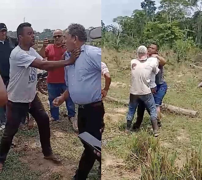 Uma discussão acalorada terminou em agressão física entre produtores rurais e o prefeito de Bujari, Joao Edvaldo Teles, o Padeiro, no início da tarde desta terça-feira, na zona rural do município.