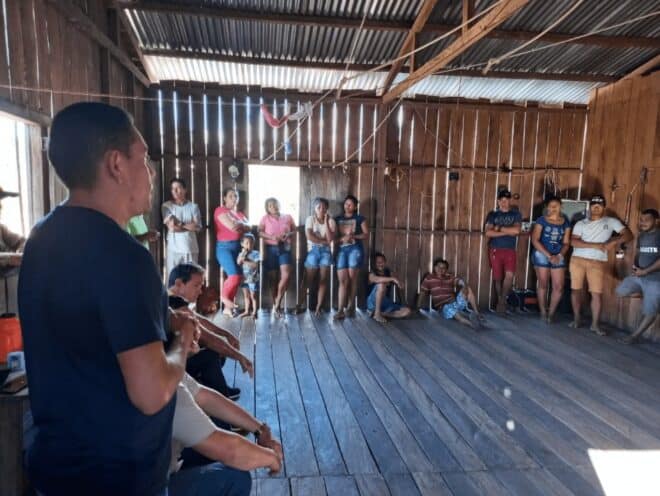 O Prefeito Jerry Correia juntamente com o Presidente da Câmara municipal Wendel Gonçalves e o Vereador Jura Pacheco participaram de uma reunião na comunidade Bom Jardim.