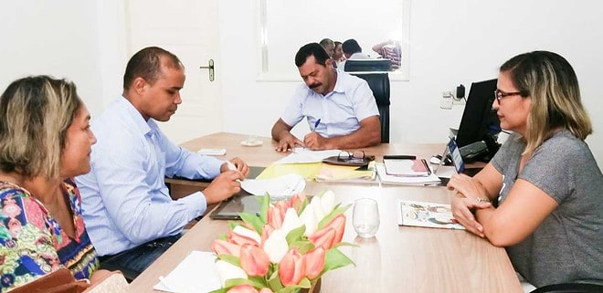 O prefeito em Exercício Raimundão recebeu na manhã desta segunda, dia 01, a Coordenadora do Núcleo da SEE Rosimare Ferreira, Tiago Menezes Gestor do Departamento de Esportes, Maria do Carmo Secretária de Esportes Cultura e Lazer e a Coordenadora de Cultura Ana Paula Alencar, para firmarem uma parceria entre Governo do Estado e Prefeitura para a realização dos Jogos Escolares 2019 fase municipal.