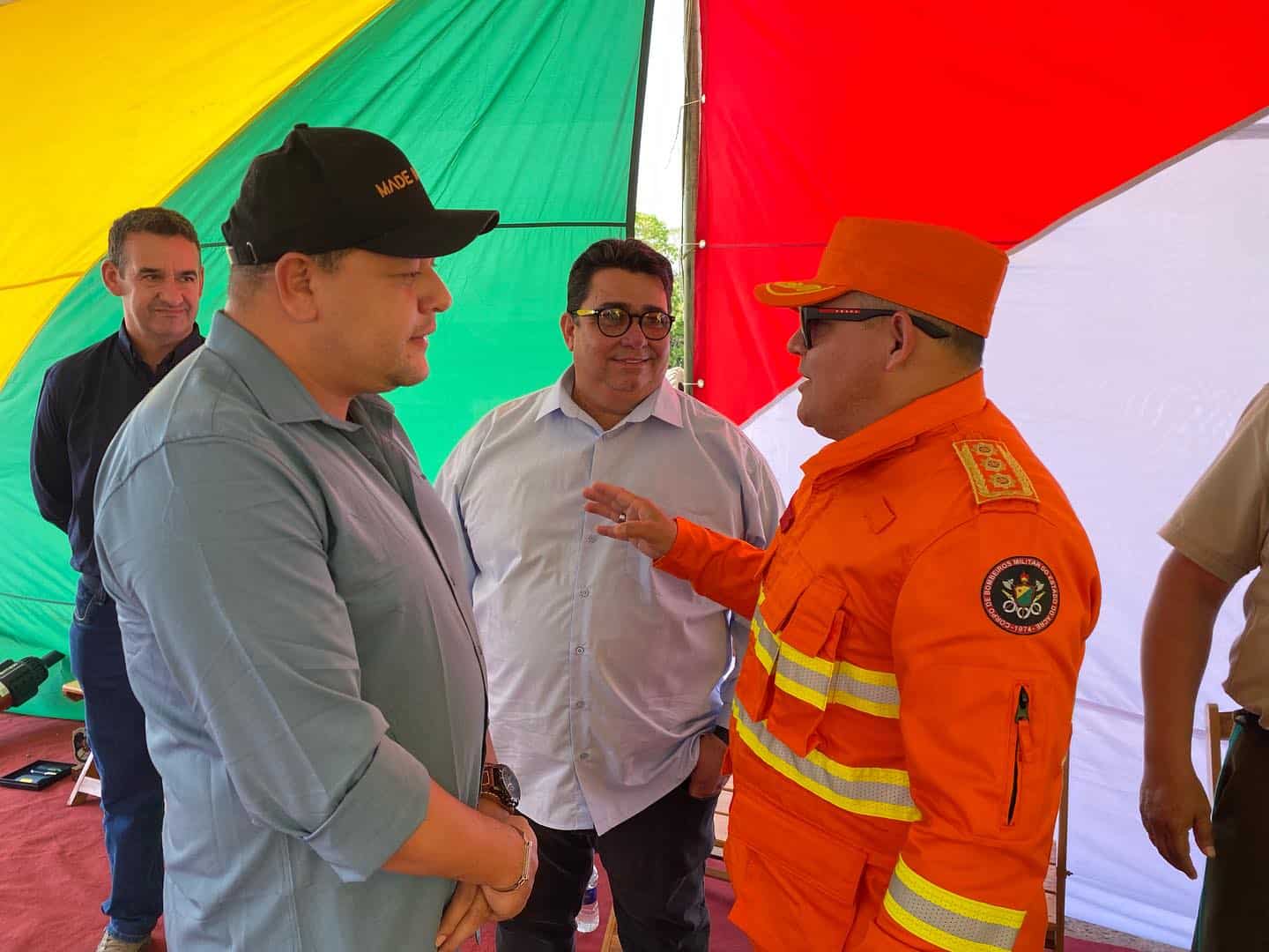 O prefeito em exercício Sérgio Mesquita reafirmou o compromisso da administração municipal com as ações do 5º Batalhão do Corpo de Bombeiros Militar do Acre no Alto Acre. Foto: cedida