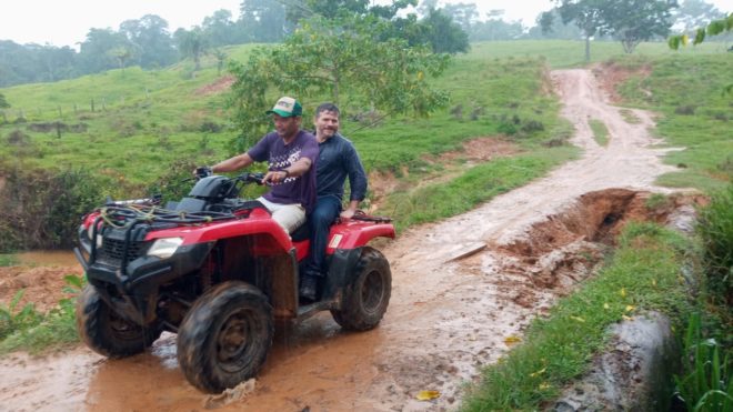 Mesmo debaixo de muita chuva o prefeito foi verificar a situação em que se encontra os ramais nesse período de chuvas. “Mesmo em tempos de pandemia tenho me esforçado ao máximo para visitar as comunidades rurais e ver de perto a situação em que vivem nossos pequenos produtores, neste final de semana visitei o ramal da Filipinas e Terra Alta e pude verificar os locais que tem urgência de intervenção por parte da prefeitura.”