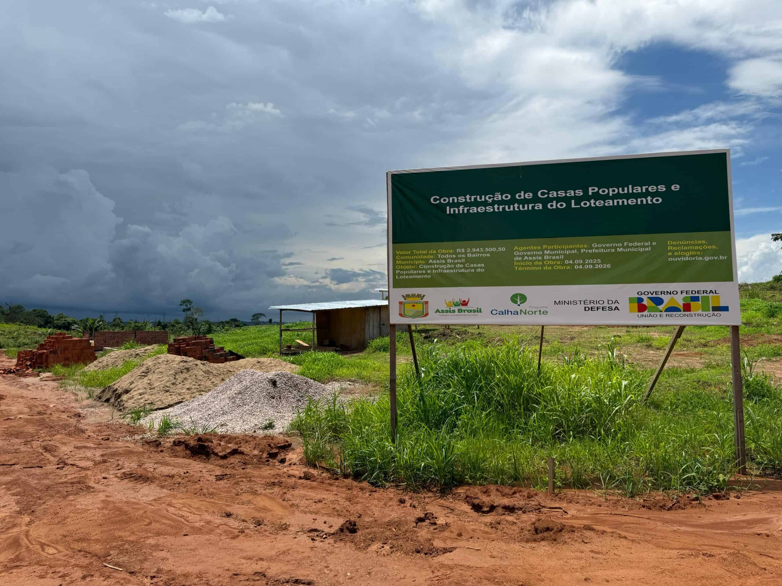 O prefeito de Assis Brasil, Jerry Correia, juntamente com o secretário municipal de Planejamento, Quedinei, vistoriou nesta semana o início de mais uma importante obra habitacional no município: a construção de 11 novas casas populares no Km 02, na parte alta da cidade. Além das moradias, está sendo realizado o asfaltamento da rua e toda a infraestrutura necessária para garantir que as famílias vivam com conforto, segurança e dignidade.