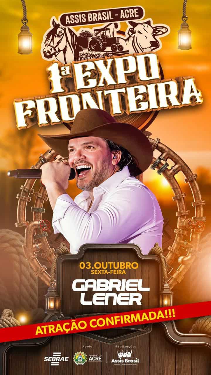 O prefeito de Assis Brasil, Jerry Correia, anunciou mais uma grande novidade para a 1ª ExpoFronteira. O cantor Gabriel Lener será a atração principal da noite de sexta-feira, prometendo um show inesquecível para o público.