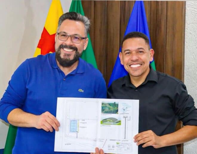 Nesta sexta-feira (20), o prefeito Jerry Correia reuniu-se com o senador Alan Rick para apresentar o projeto da nova quadra esportiva que será construída na Escola Municipal Vicente Bessa. A obra, que já conta com recursos garantidos por meio de emenda parlamentar destinada pelo senador, atende a uma antiga reivindicação da comunidade local e da própria comunidade escolar.