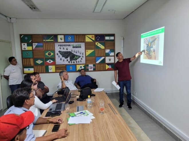 Na sede da Associação dos Municípios do Acre (AMAC), o prefeito de Assis Brasil, Jerry Correia, apresentou para o Senador Sérgio Petecão os principais projetos de sua gestão para o desenvolvimento da agricultura familiar. Participaram do encontro o coordenador da AMAC, Marcus Frederik, o vereador de Assis Brasil, Jura Pacheco e o presidente da COOPERACRE, José de Araújo.