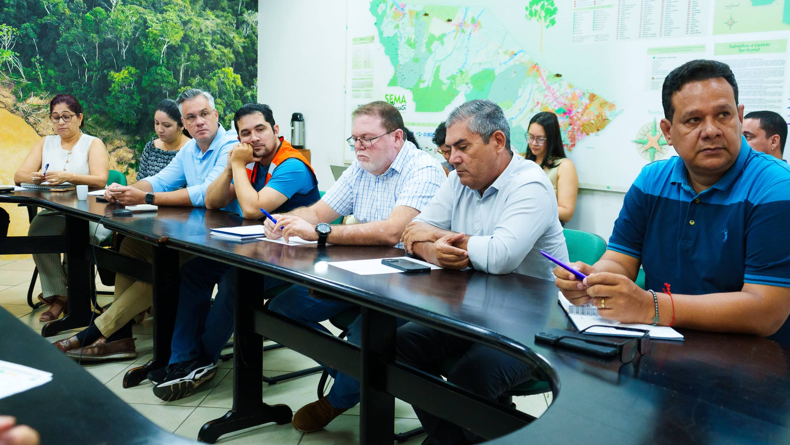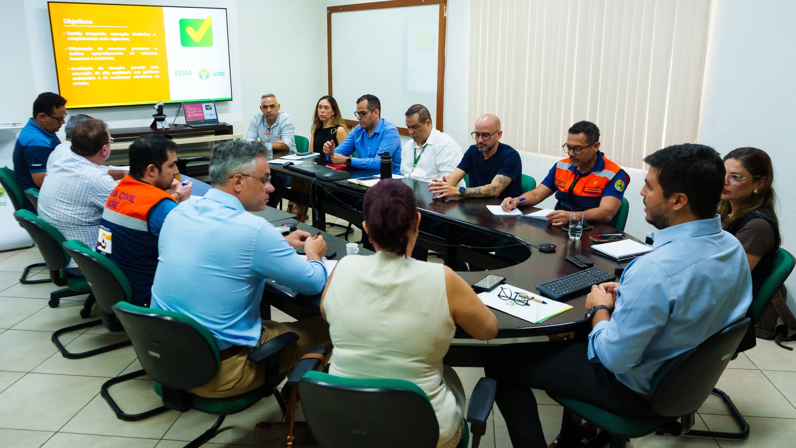 Participaram da reunião, gestores e técnicos da Sema, Secretaria de Agricultura (Seagri); da Casa Civil (Secc); de Planejamento (Seplan); de Povos Indígenas (Sepi); do Instituto de Mudanças Climáticas e Regulação de Serviços Ambientais (IMC); de Meio Ambiente do Acre (Imac); de Terras do Acre (Iteracre), e da Coordenadoria Estadual de Proteção e Defesa Civil (CEPDC).