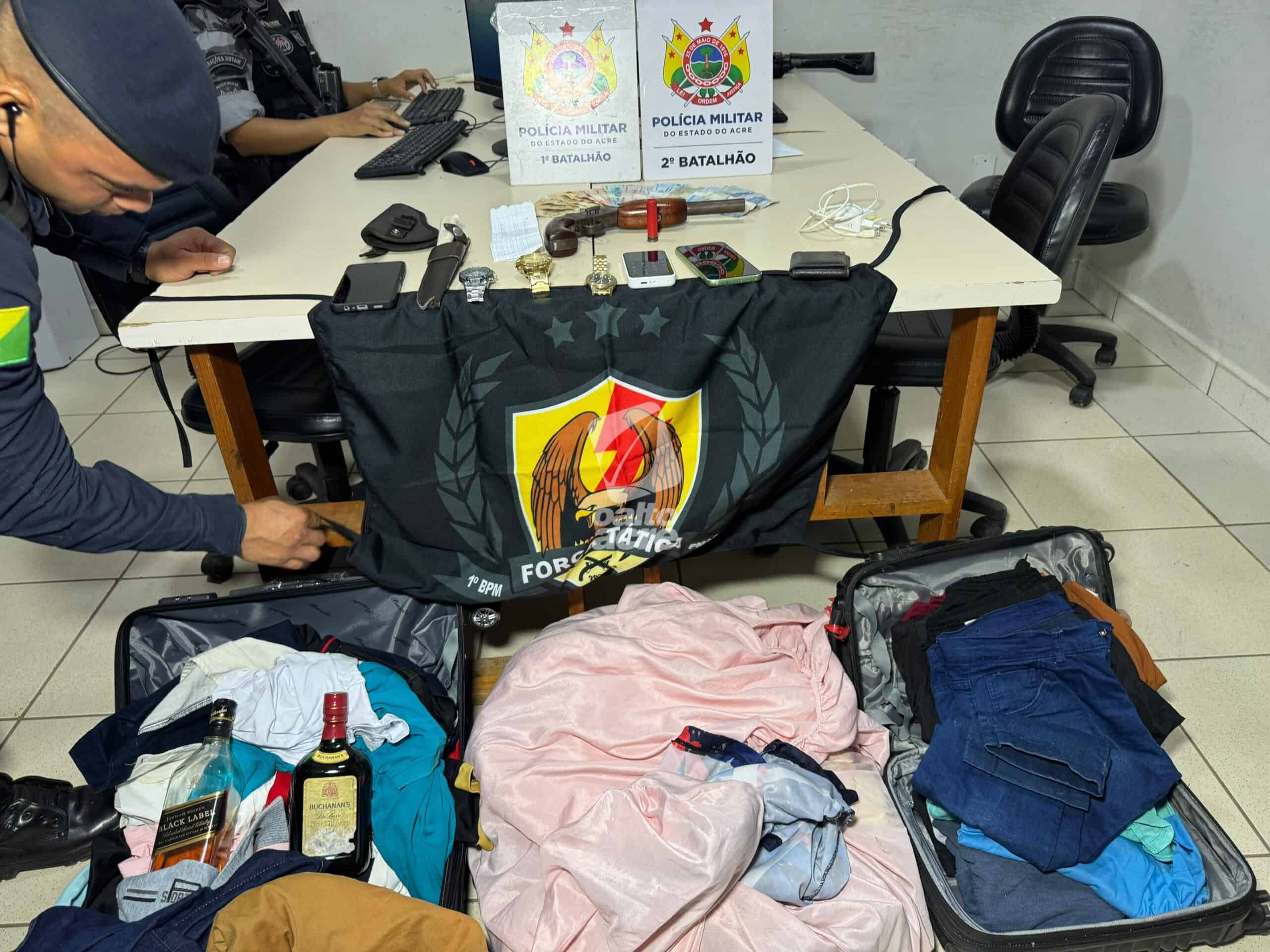 Dois jovens foram presos após perseguição na BR-364; arma de fogo e objetos da vítima foram recuperados