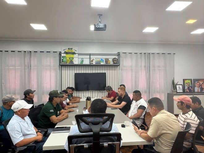 Dando continuidade às agendas em Rio Branco, o prefeito Jerry Correia esteve reunido nesta terça-feira (12) na Secretaria Estadual de Educação, acompanhado de representantes dos povos e comunidades tradicionais de Assis Brasil. Participaram do encontro Wendel Araújo, representante dos moradores da Reserva Extrativista Chico Mendes; o vereador Jurandir, presidente do Sindicato dos Trabalhadores Rurais; José de Araújo, presidente da Cooperacre e da Coopaeb; além de diversas lideranças indígenas das cabeceiras do Rio Acre e do Rio Iaco.